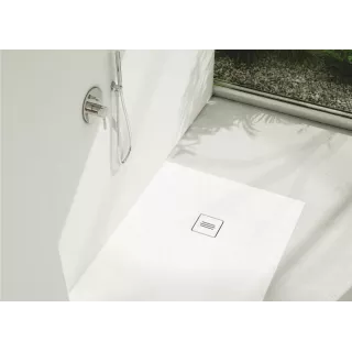 Nr kat. 3.3104-M2Długość 90cmSzerokość 90cmPromień R55cmWysokość 3,5cmGłębokość spad do 2% Kształt: półokrągły Materiał: kompozyt Stonicryl® Kolor: biały gładki RAL 9003 Sposób montażu: w posadzce, na posadzce Średnica odpływu: 90mm...
