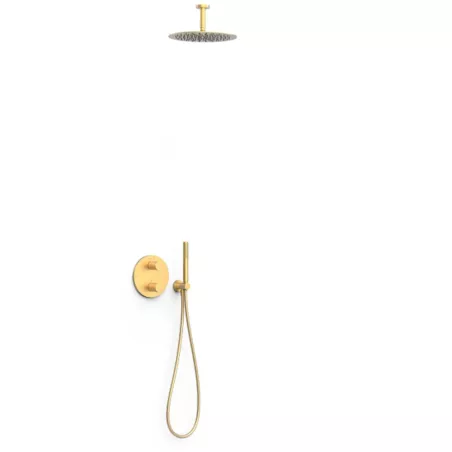 System prysznicowy podtynkowy Omnires Y czarny mat/złoty Najważniejsze parametry produktu: Rodzaj: prysznicowy, podtynkowy Kolor: złoty/czarny mat bateria prysznicowo-wannowa podtynkowa (Y1235BL) deszczownica mosiężna, rozmiar: o25 cm ramię...